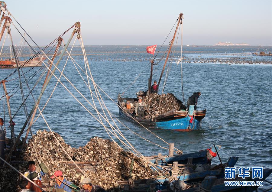 辽宁长海渔民打捞牡蛎 场面壮观!