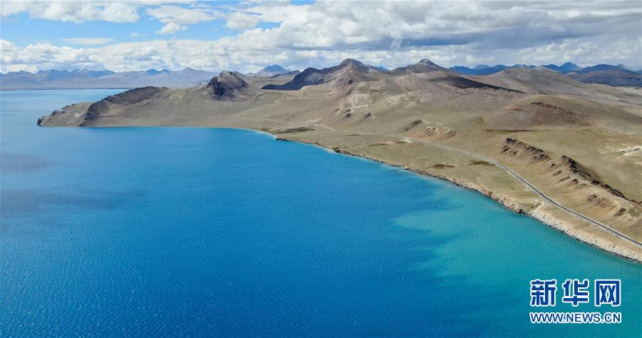 普姆雍错湖紧挨着公路,是自驾游的理想目的地(9月19日无人机拍摄)。新华社记者晋美多吉摄