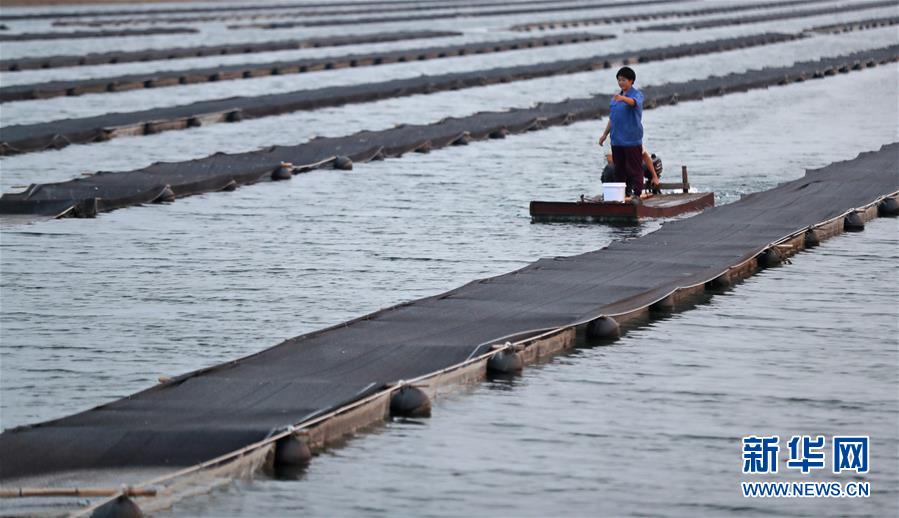 郭旗和爱人坐船查看海参养殖情况(9月5日摄)。 新华社记者 杨青 摄