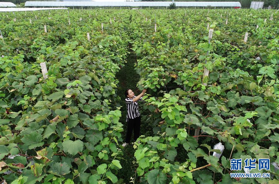 王卫花在葡萄园内忙碌(8月21日摄)。 新华社记者 邵瑞 摄