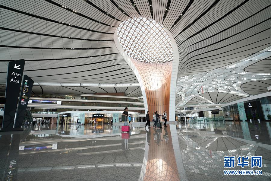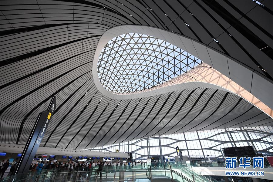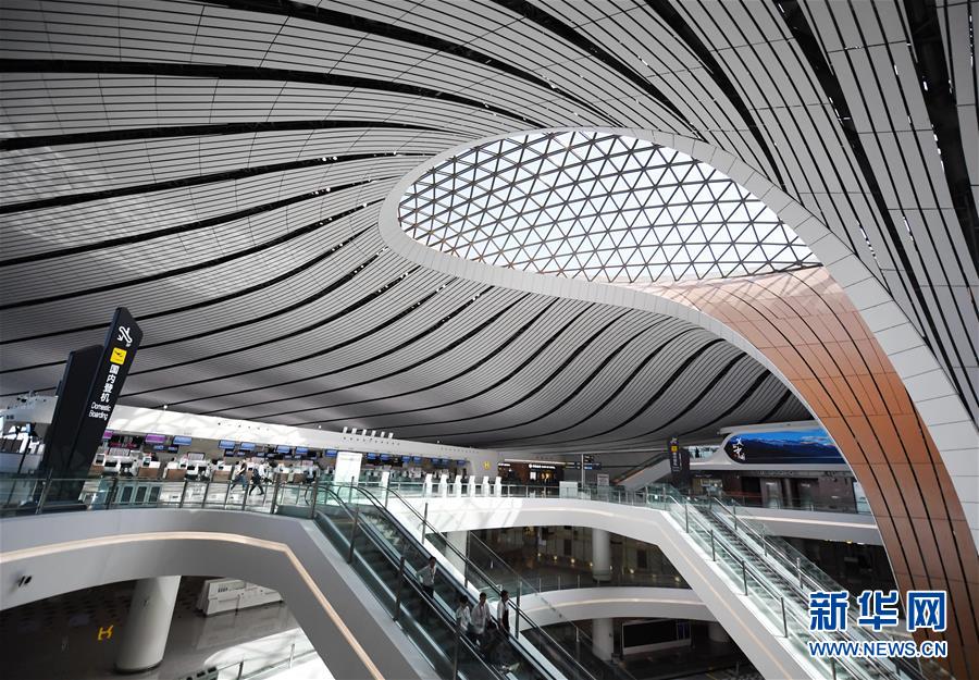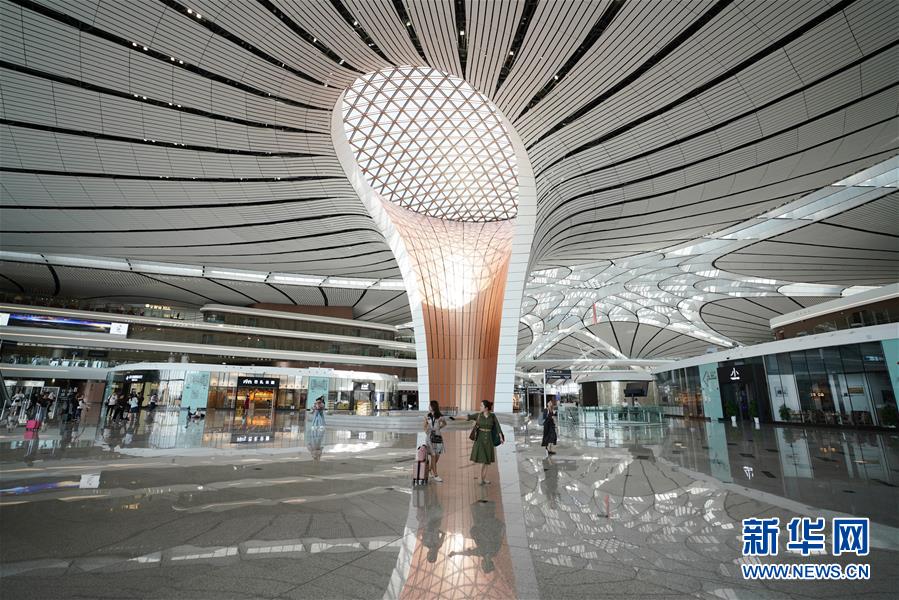 9月25日拍摄的北京大兴国际机场航站楼内部。新华社记者张晨霖摄