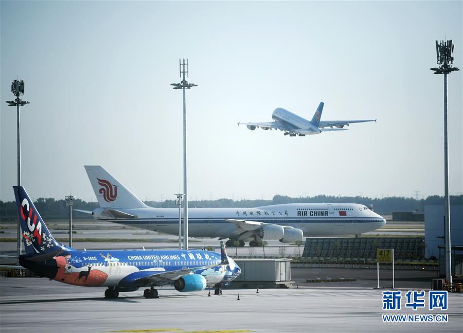 9月25日,中国国际航空公司的CA9597次航班从北京大兴国际机场起飞。新华社记者鞠焕宗摄