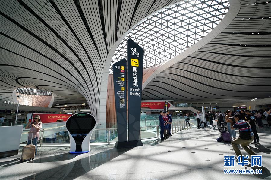 9月25日,乘客在北京大兴国际机场航站楼内登机。新华社记者张晨霖摄