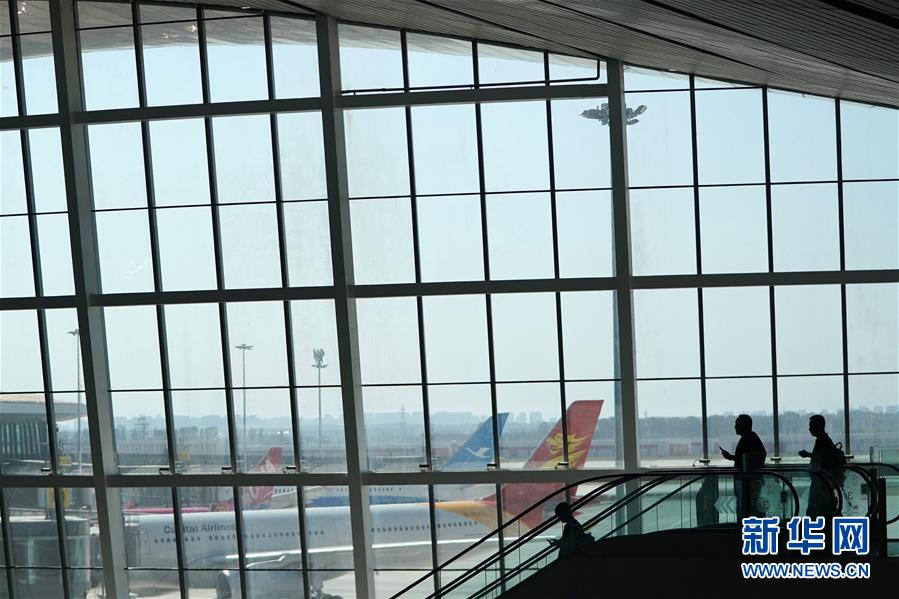 9月25日,乘客在北京大兴国际机场航站楼内准备乘机。新华社记者鞠焕宗摄