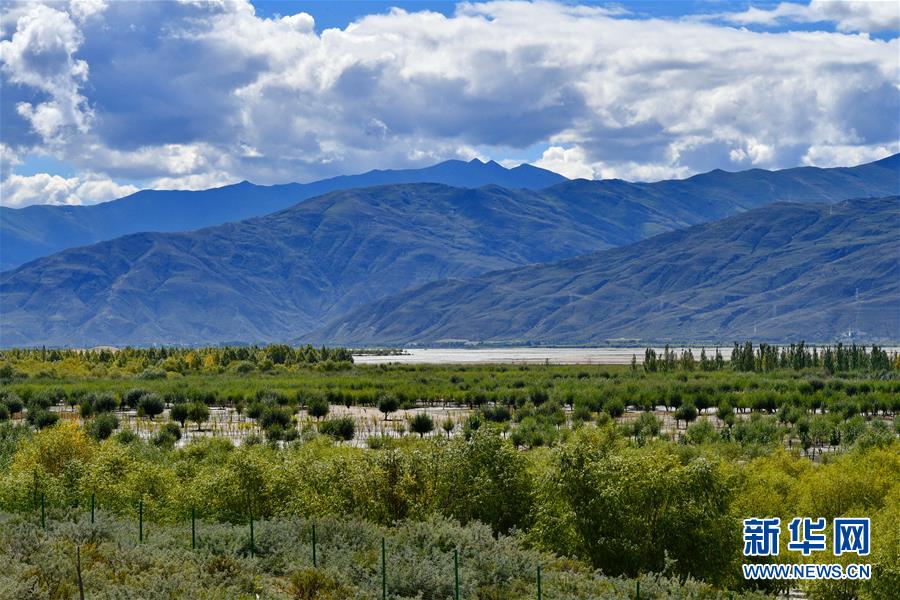 雅鲁藏布江山南段的防护林(9月15日摄)。 新华社记者 张汝锋 摄