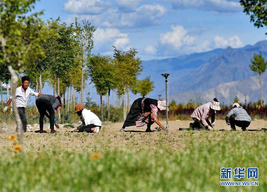当地群众在山南市扎囊县藏草万亩植物种苗繁育基地劳动(8月29日摄)。 新华社记者 张汝锋 摄