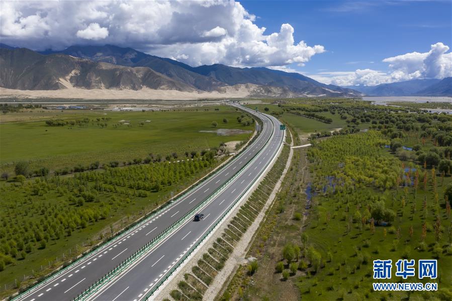 雅鲁藏布江沿岸的公路(9月10日无人机拍摄)。 新华社记者 旦增尼玛曲珠 摄