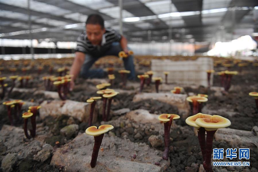 9月25日,在福建省南平市浦城县莲塘镇山桥村,技术员在采摘灵芝。 近年来,福建省南平市浦城县利用当地独特的生态资源,依托特色灵芝产业,发挥龙头企业示范作用,通过公司+基地+贫困户入股等方式,辐射带动17个乡镇约300户贫困户增收。 新华社记者 宋为伟 摄