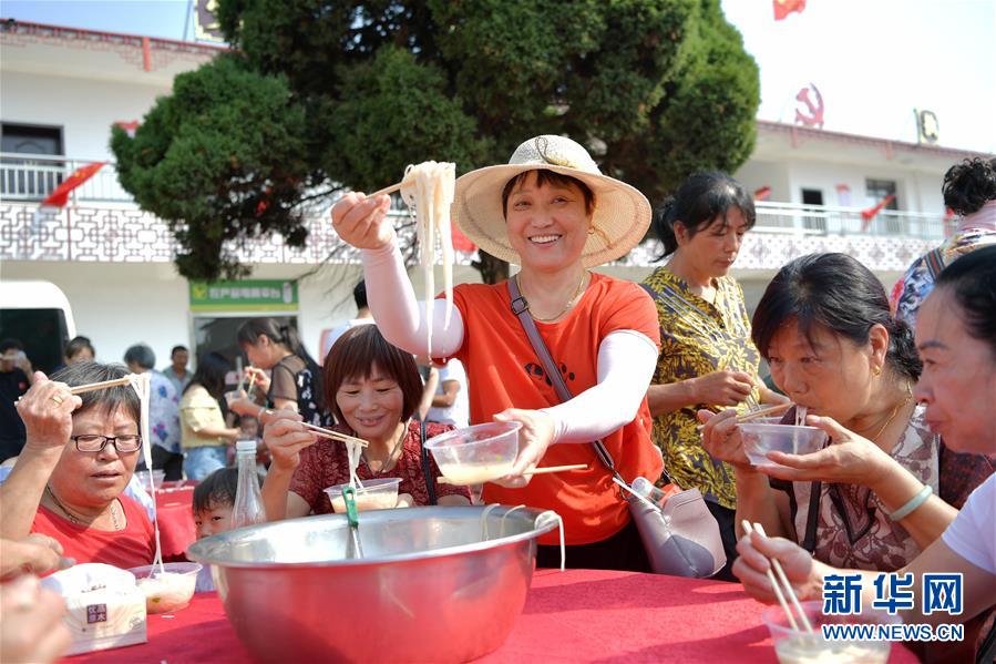 10月1日,在江西省南昌市南昌县银三角敷林村,当地村民举行“同吃国庆面 共迎国庆节”活动。当日是国庆节,全国各地的人们用各种方式欢度节日。新华社记者 彭昭之 摄