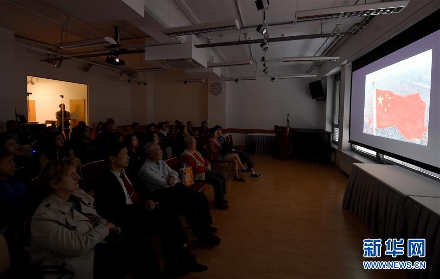 10月1日,在奥地利维也纳中国文化中心,观众们观看电影《我和我的祖国》。新华社记者郭晨摄