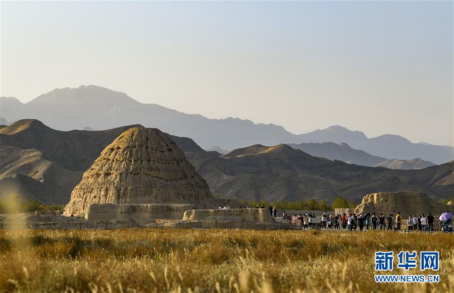 10月2日,游客在宁夏银川市西夏陵遗址区参观。 当日是国庆假期的第二天,许多游客来到宁夏银川市西夏陵参观。西夏陵位于贺兰山东麓,是中国现存规模最大、地面遗迹保存最完整的帝王陵园之一。 新华社记者 冯开华 摄