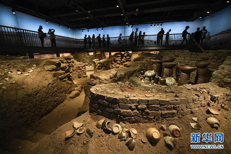 10月2日,游客在宁夏银川市西夏陵景区的西夏博物馆观看展出的瓦当、滴水。 新华社记者 冯开华 摄