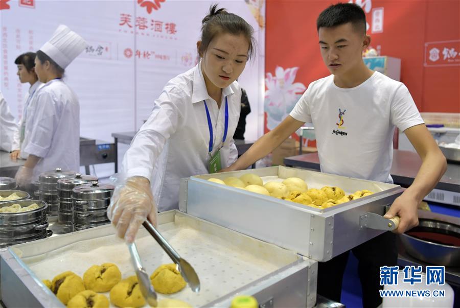10月3日,工作人员在整理制作好的面点。新华社记者 曹阳 摄