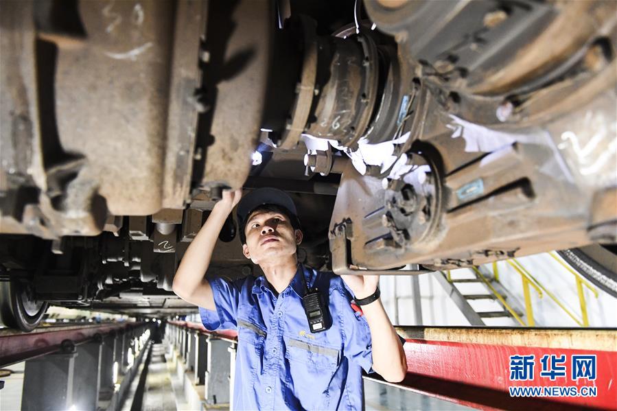 “动车医生”在地沟内对动车进行检查(10月2日摄)。 新华社记者 曹祎铭 摄