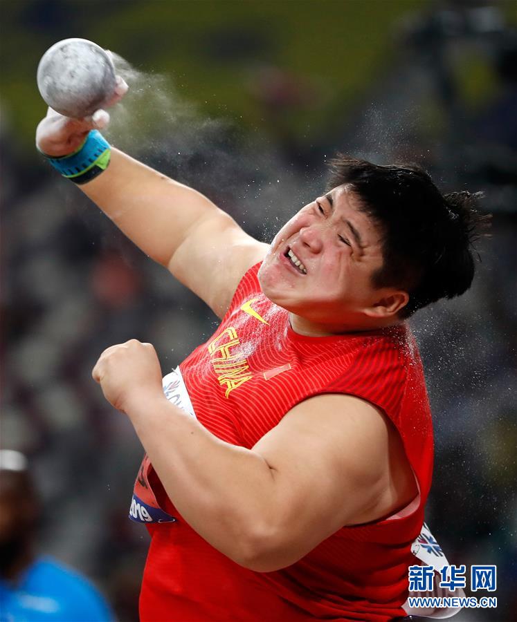 当日,在卡塔尔多哈举行的2019国际田联世界田径锦标赛女子铅球决赛中,卫冕冠军、中国选手巩立姣以19米55的成绩夺得冠军。 新华社记者王丽莉摄