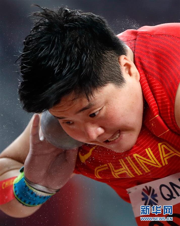 当日,在卡塔尔多哈举行的2019国际田联世界田径锦标赛女子铅球决赛中,卫冕冠军、中国选手巩立姣以19米55的成绩夺得冠军。 新华社记者王丽莉摄