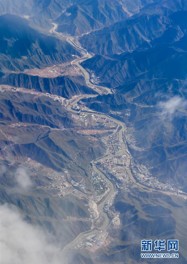 这是空中拍摄的高原景色(10月3日摄)。 国庆期间,来自国内外的游客乘机前往西藏观光旅游,在飞往拉萨的飞机上鸟瞰高原,欣赏高原独特的美景。 新华社记者 普布扎西 摄