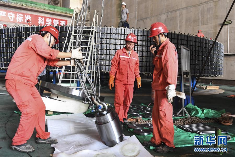 5月30日,工人在乌东德水电站左岸地下电站主厂房内工作。新华社记者陈晔华摄