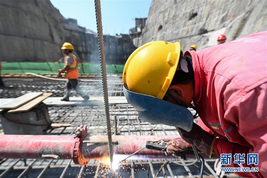 10月6日,工人在大藤峡水利枢纽工程工地上焊接钢筋。新华社记者曹祎铭摄
