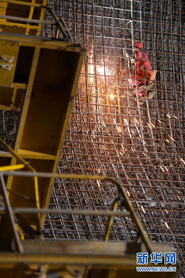 5月31日,一名工人在乌东德水电站的泄洪洞中施工。新华社记者陈晔华摄