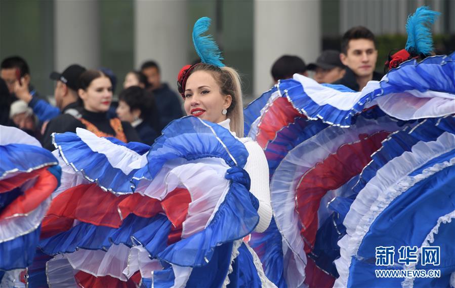 演员在北京世园会园区表演(4月29日摄)。新华社记者 李欣 摄