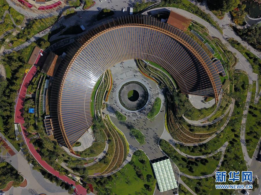 北京世园会国际馆(10月6日无人机拍摄)。新华社记者张晨霖摄