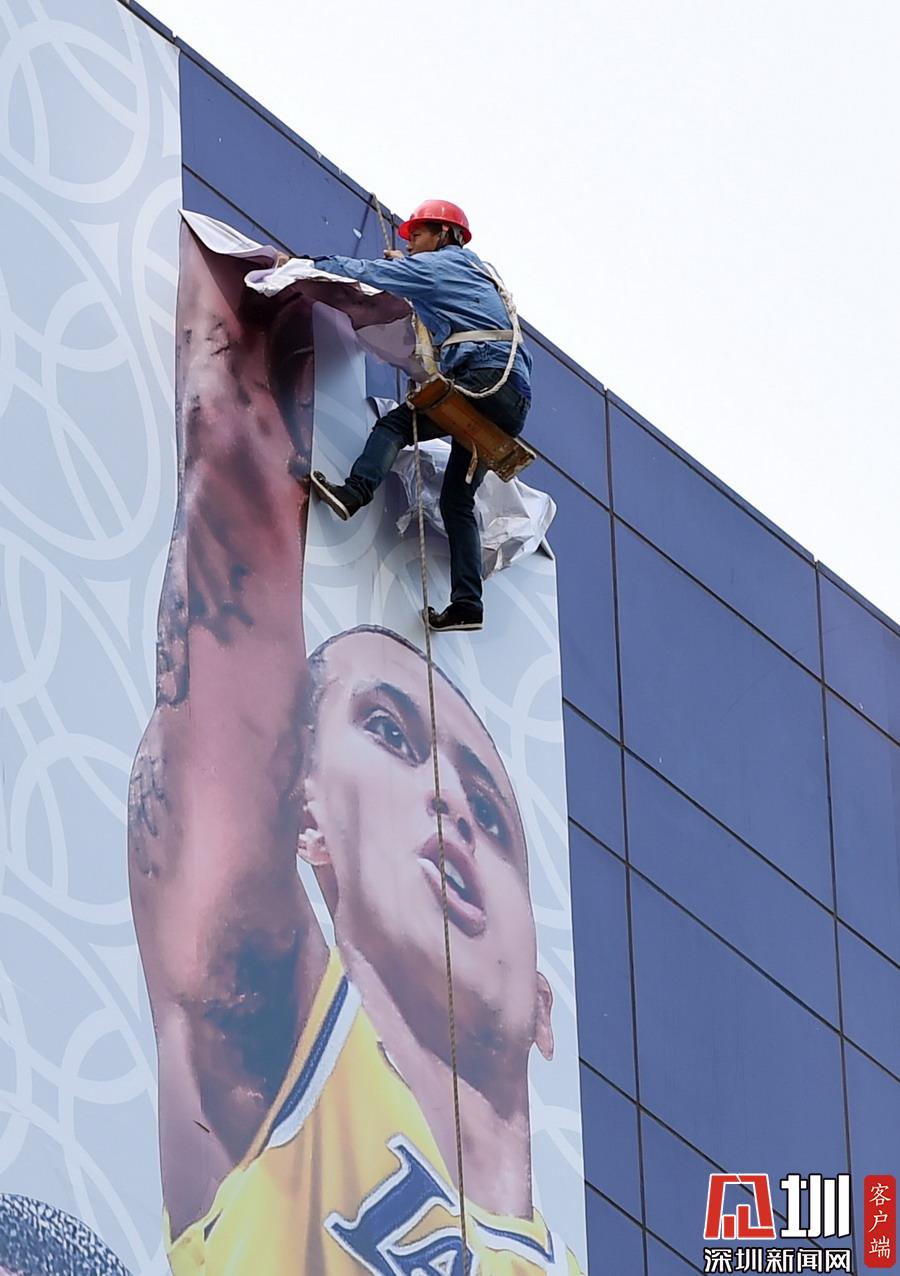 “2019NBA球迷之夜”取消 上海正大广场外围巨幅NBA中国赛海报被拆除