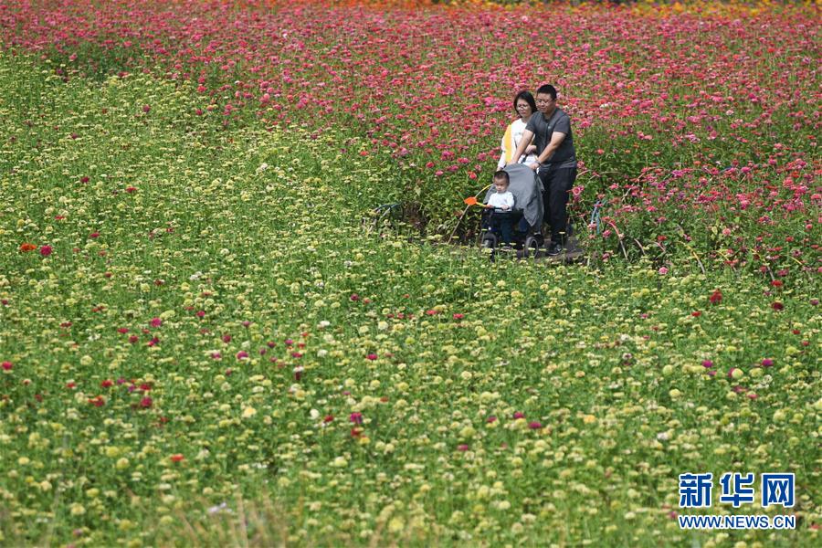 10月9日,小朋友和家长在四季花海城市公园游玩。 秋日时节,位于安徽省合肥市的四季花海城市公园花香四溢,色彩缤纷,成为游客和市民休闲游玩的好去处。 新华社记者 张端 摄