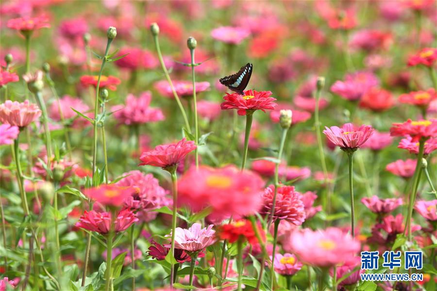 10月9日,一只蝴蝶在四季花海城市公园花丛中。 秋日时节,位于安徽省合肥市的四季花海城市公园花香四溢,色彩缤纷,成为游客和市民休闲游玩的好去处。 新华社记者 张端 摄