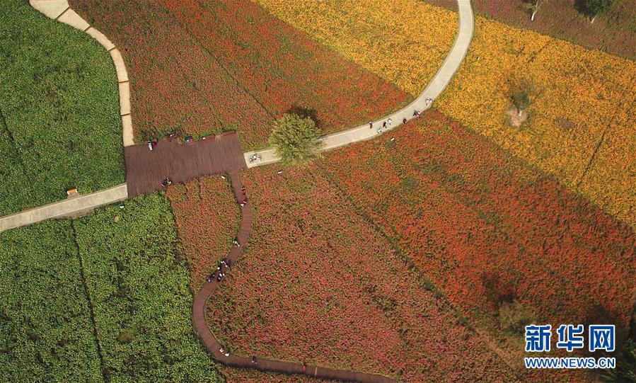 10月9日无人机拍摄的四季花海城市公园风景。 秋日时节,位于安徽省合肥市的四季花海城市公园花香四溢,色彩缤纷,成为游客和市民休闲游玩的好去处。 新华社记者 张端 摄