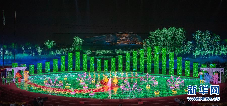 10月9日,演员在节目“绿野漫游”中表演。当日,2019年中国北京世界园艺博览会闭幕式在北京举行。新华社记者翟健岚摄