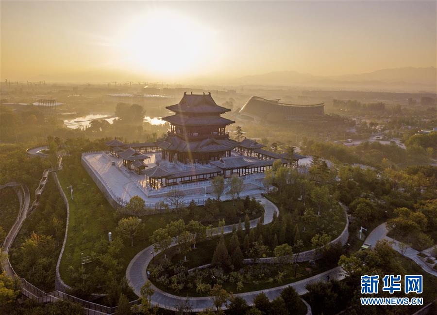 北京世园会园区内的永宁阁(10月7日无人机拍摄)。新华社记者才扬摄