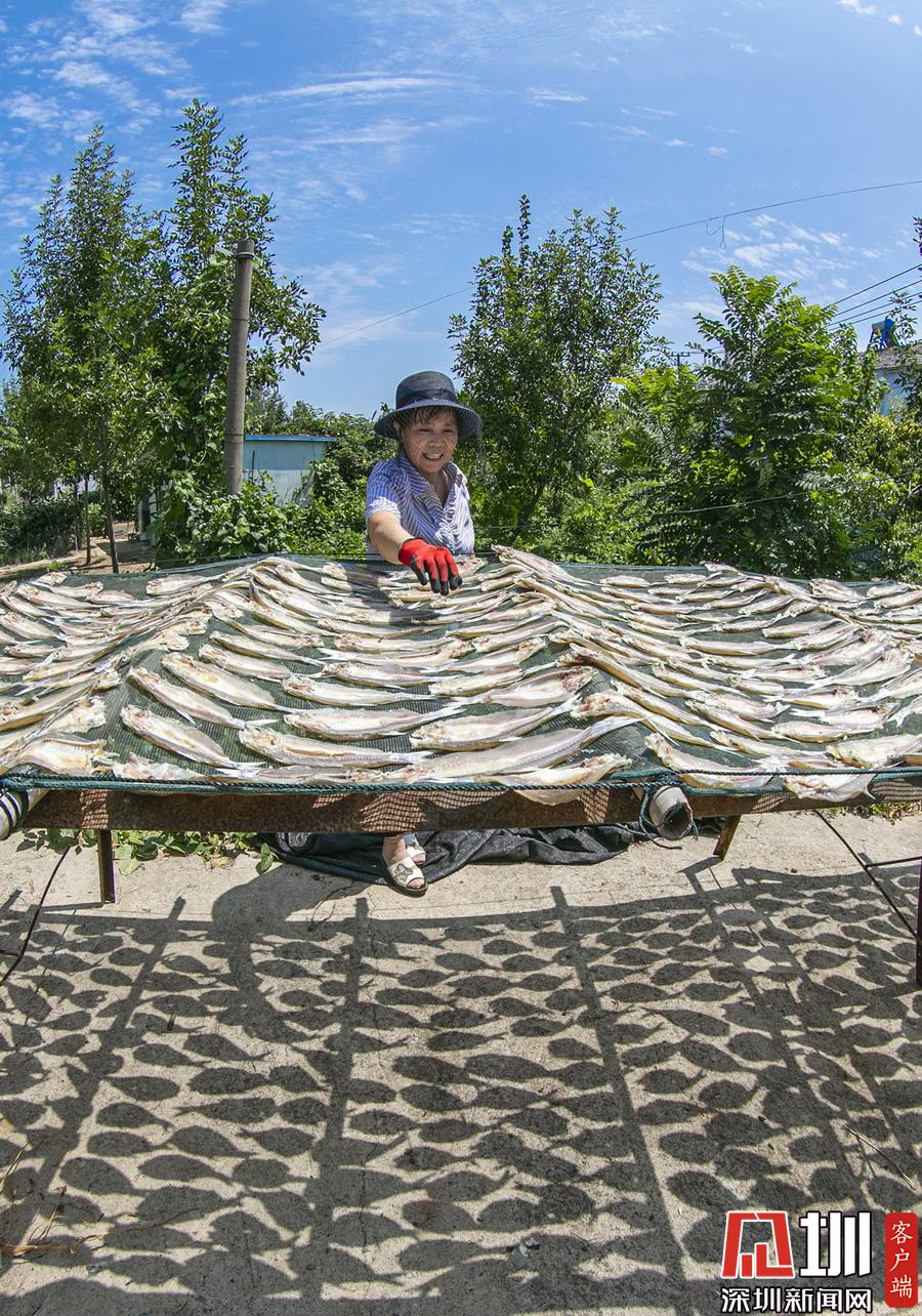 岸上,家家户户都在忙着晾晒刚捕捞上来的毛刀鱼、小白鱼和武昌鱼。