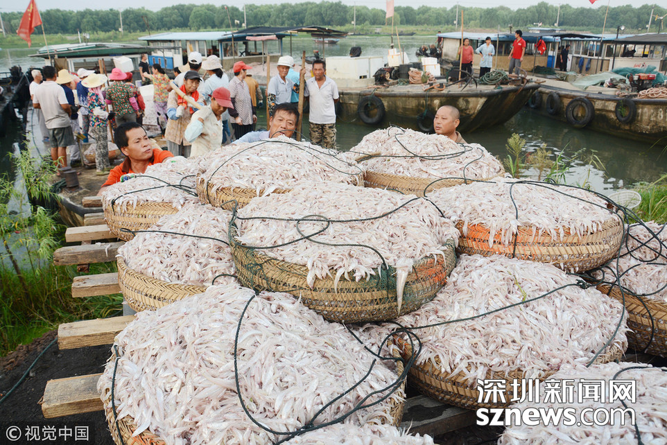 2018年8月16日,安徽巢湖渔民正在装运捕捞上来的毛鱼和银鱼。