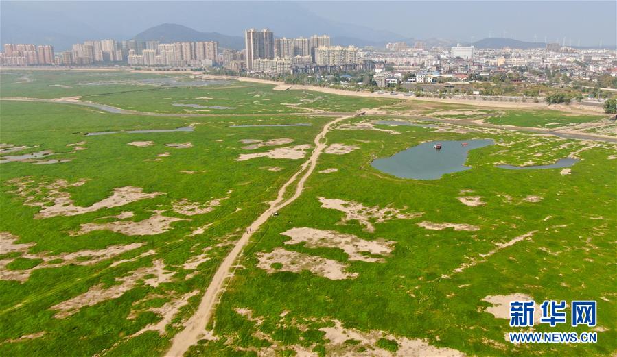 这是江西省庐山市鄱阳湖湖区干涸的情况(10月9日摄)。新华社记者胡晨欢摄