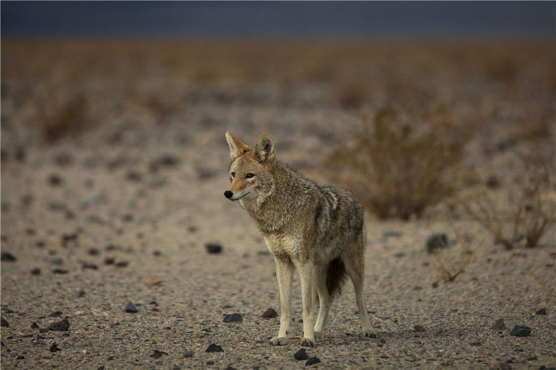 当地时间2017年1月8日,美国加州,一系列强风暴进入加州,一只土狼在沙漠中。