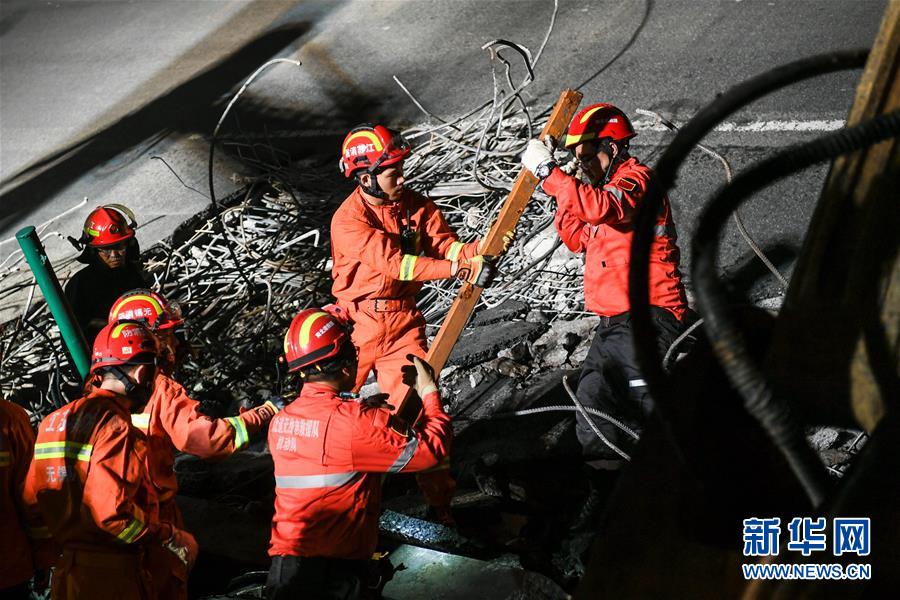 直击无锡高架桥垮塌救援现场 三辆小车被压