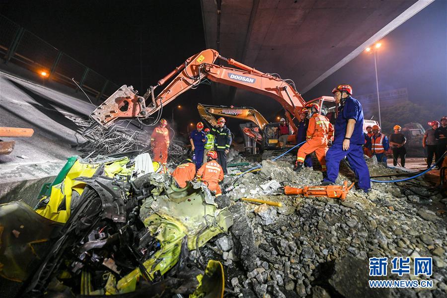 直击无锡高架桥垮塌救援现场 三辆小车被压