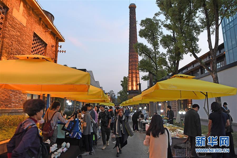 游客在江西景德镇陶溪川大集上选购陶瓷商品(2018年10月18日摄)。新华社记者 万象 摄