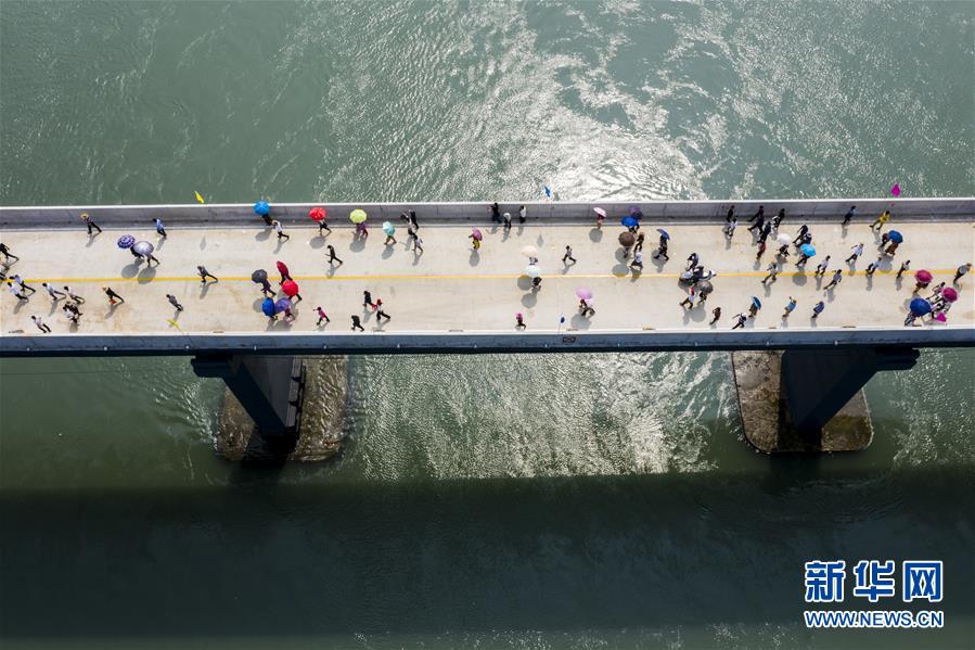 10月12日,福建省霞浦县东安岛海防大桥正式通车,这是当地群众走在新桥上(无人机拍摄)。新华社记者姜克红摄
