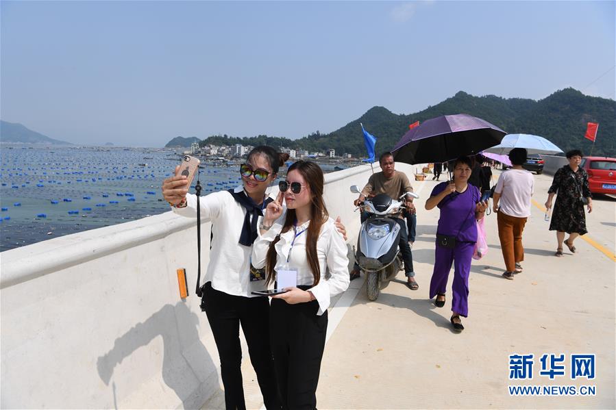 10月12日,福建省霞浦县东安岛海防大桥正式通车,当地群众前来体验新桥带来的便利。新华社记者姜克红摄