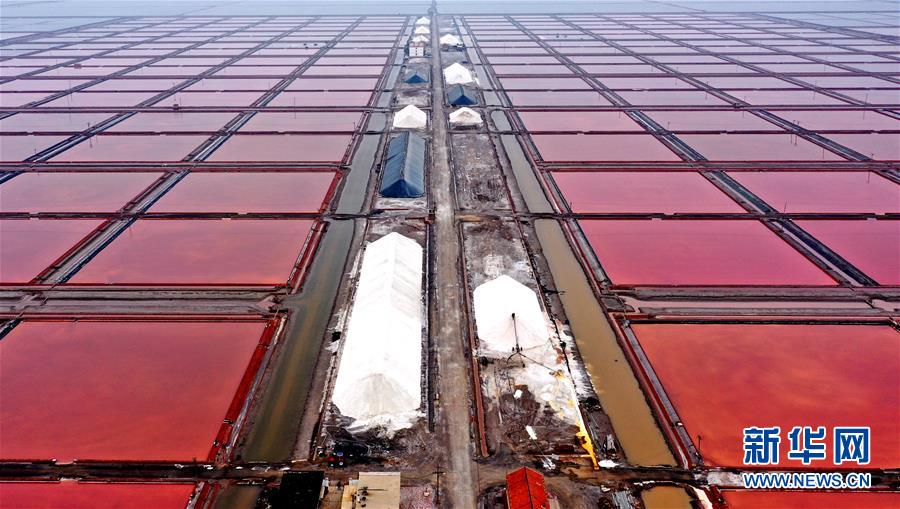 日前,山东省无棣县境内的鲁北盐场进入海盐收获季节,星罗棋布的盐池将大地装扮得缤纷如画。无棣县位于山东省北部渤海之滨,全县拥有盐田365万公亩,是我国重要的海盐生产基地。据无棣县工信局统计,今年1-9月份,当地原盐产量111.7万吨。