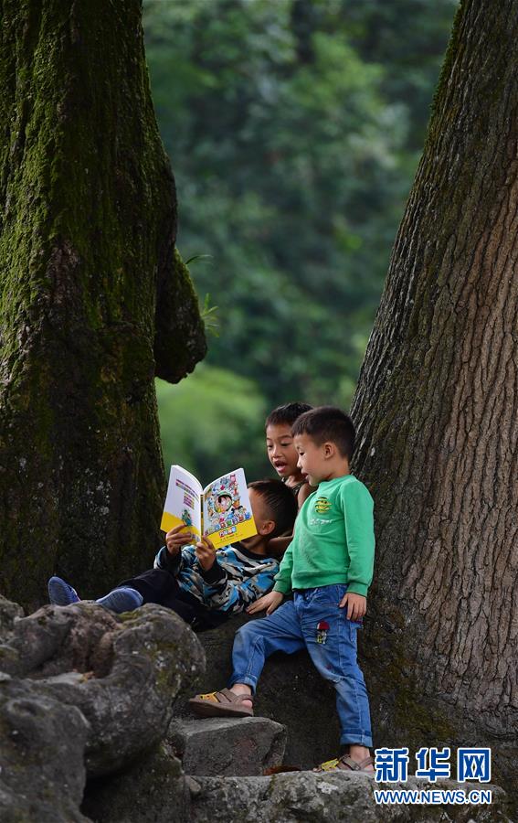 黔桂乌英苗寨的孩子们在阅读刚刚获赠的图书(10月11日摄)。
