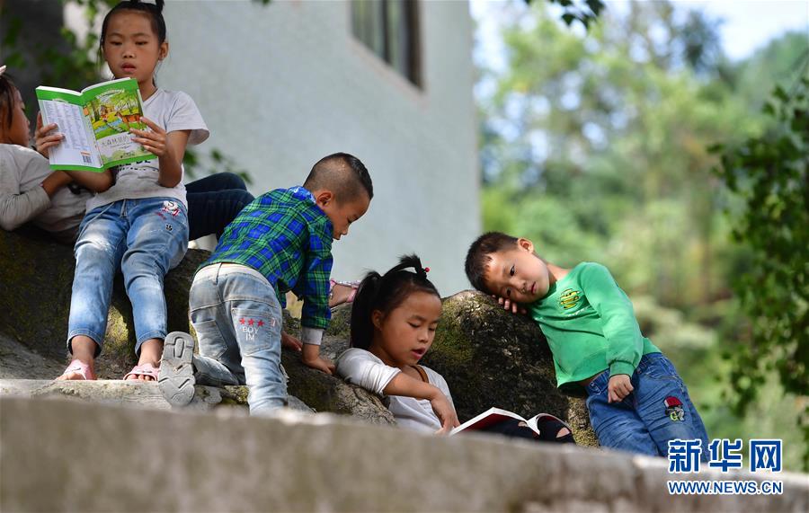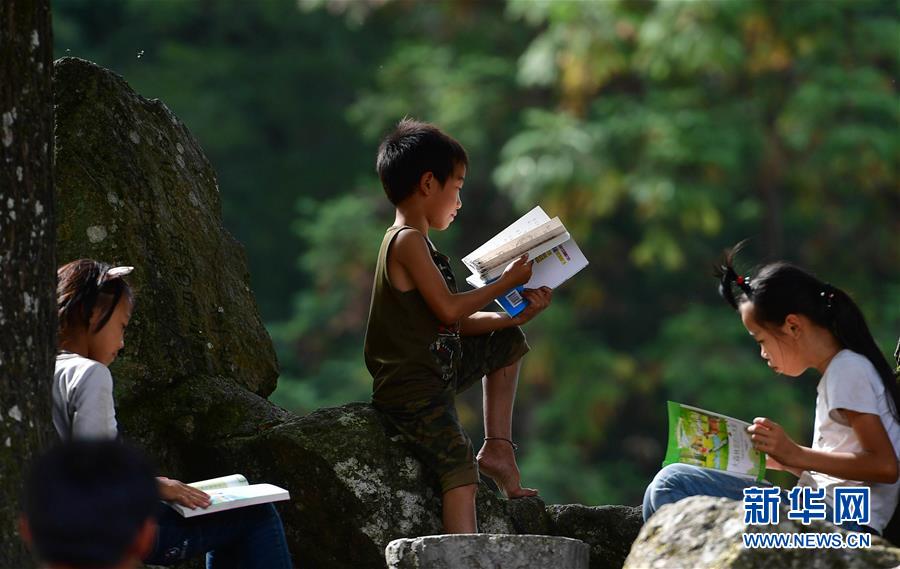 黔桂乌英苗寨的孩子们在阅读刚刚获赠的图书(10月11日摄)。新华社记者 黄孝邦 摄