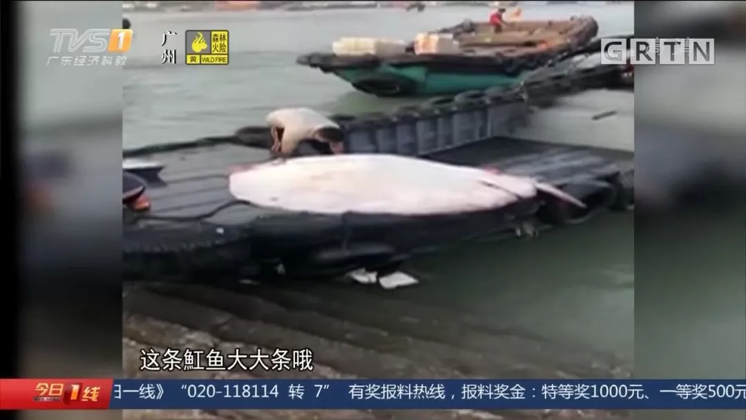 巨型“魔鬼鱼”惊现码头,300斤!8名壮汉才能拖动!(视频)