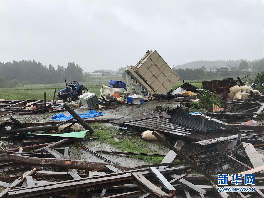 10月12日,在日本千叶县市原市,建筑物遭龙卷风袭击后被损毁。新华社记者 邓敏 摄