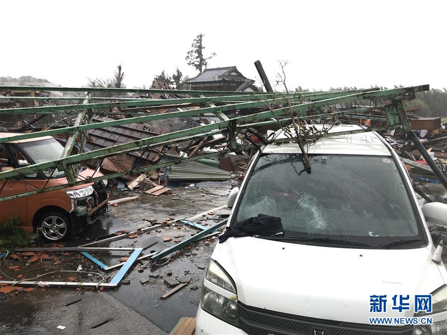 10月12日,在日本千叶县市原市,建筑物和车辆遭龙卷风袭击后被损毁。新华社记者 邓敏 摄