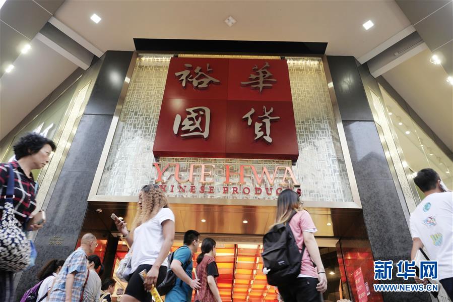矗立在香港九龙弥敦道的一个红底金字的大型招牌——裕华国货,格外引人瞩目(9月24日摄)。新华社记者王申摄