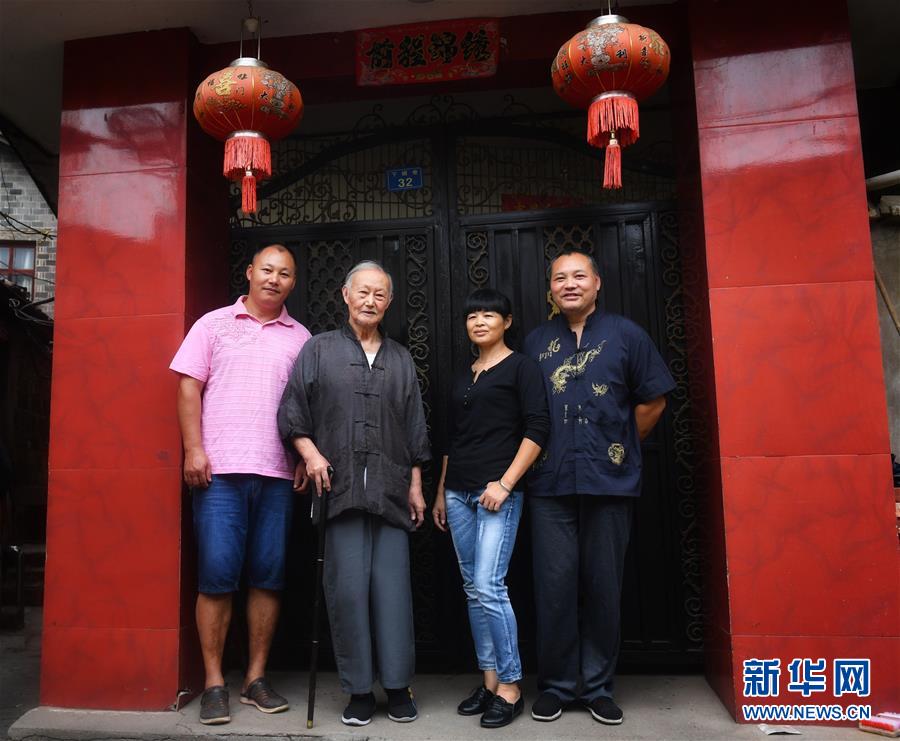 10月12日,丁国坤(左二)在家门口和他的徒弟们合影。新华社记者胡晨欢摄