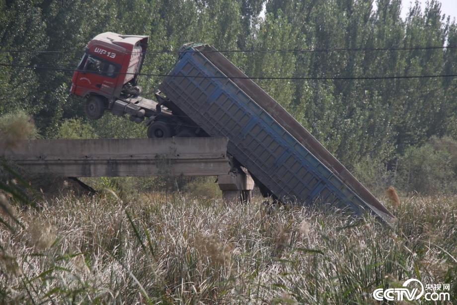 央视网消息:2019年10月13日,山东滨州,一辆满载货物的大货车路过当地一座宽4米左右的小桥时,致使桥面坍塌。据报道,13日凌晨4点左右,一辆重型半挂货车沿渤海十八路由南向北行驶至市西办事处李茂家村附近,右转弯进入连接渤海十八路与李茂家村村西乡间路的一座宽4米左右的小桥时,致使桥面坍塌。现场货车呈翘起之势,车头悬于半空中,车尾插入水中,事故未造成人员伤亡。据现场了解,该桥建设于1974年,桥头有警示标识,警示承载4吨。目前救援工作正在紧张有序地进行中。视觉中国